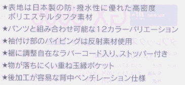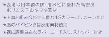 表地:ポリエステル100%(高密度タフタ・撥水加工)