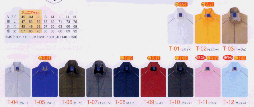 | こどものユニフォーム 【ウィンドブレーカー】 ジュニアサイズがあるのはカラーサンプルの上にオレンジのマークがあるものです。 |