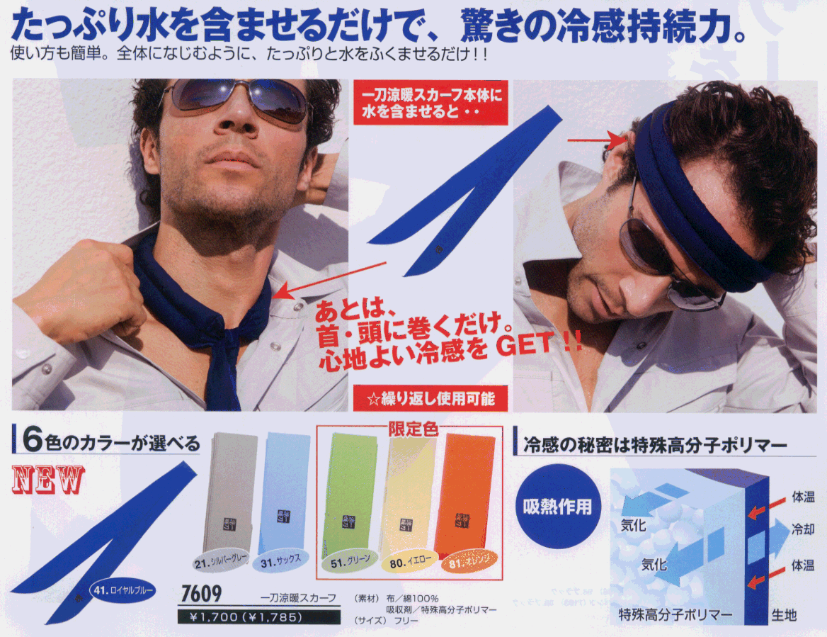 | 熱中症対策 ネック&ヘッドクーラー (水を含ませるだけで冷感持続:特殊高分子ポリマー採用) |