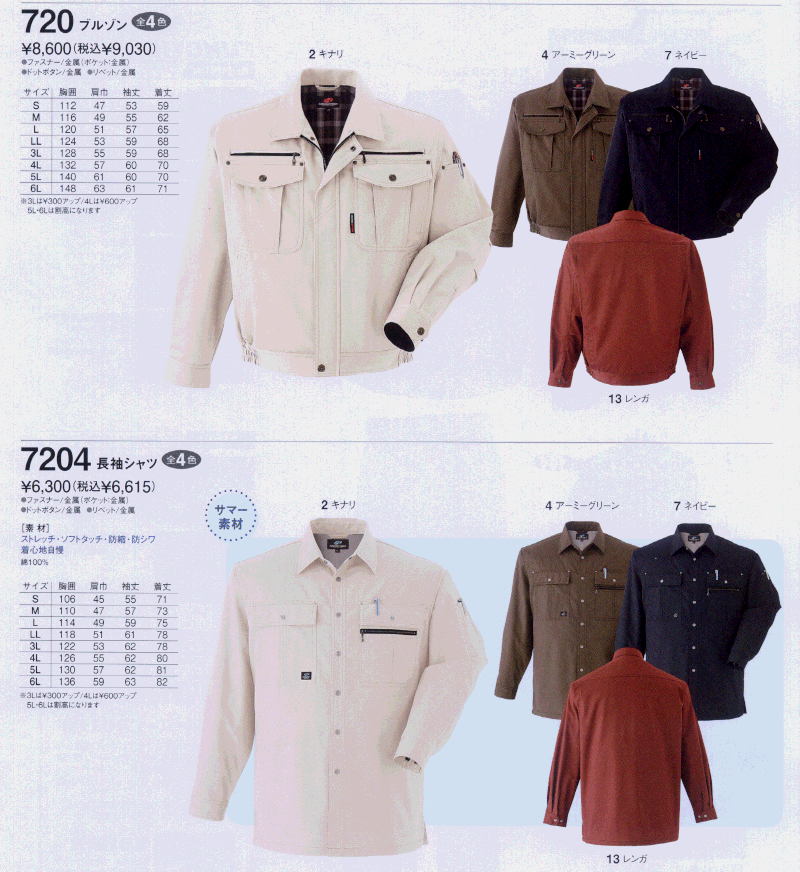 ストレッチ・防縮 防シワ 綿100%作業服